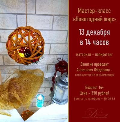Приходите на мастер-класс "Новогодний шар" 13 декабря в 14 часов